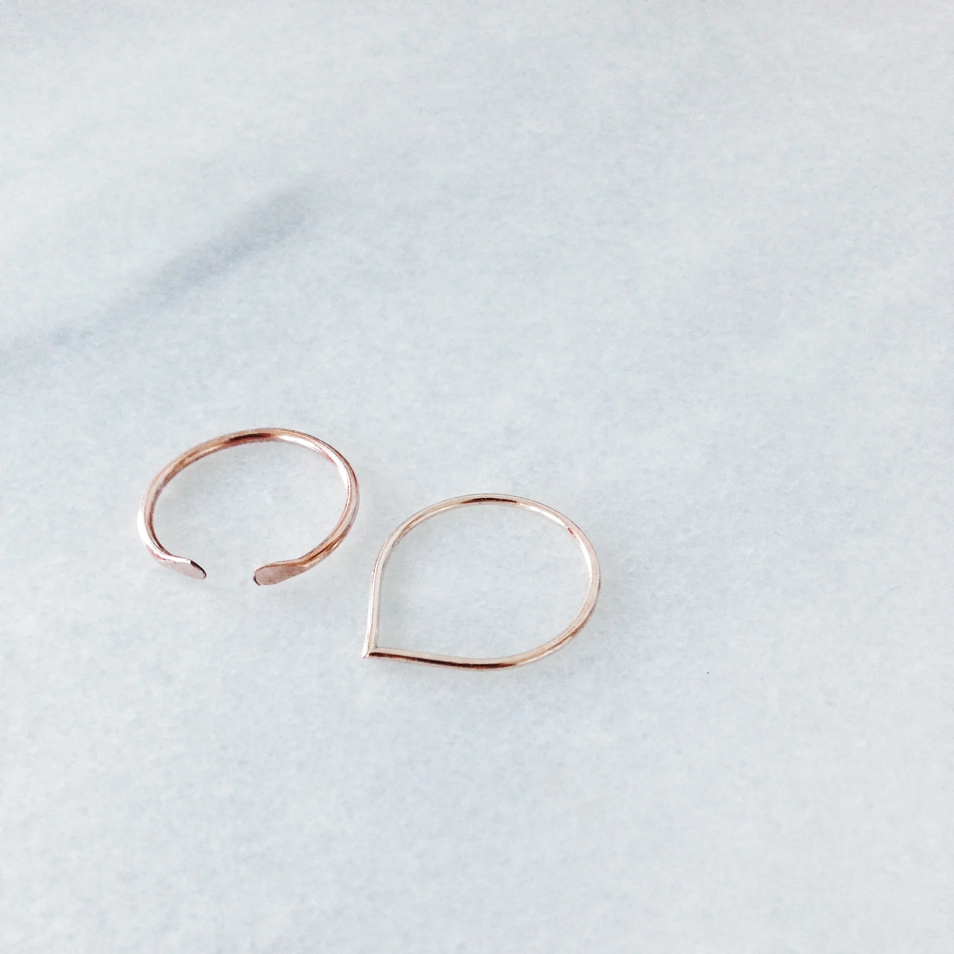 I'm so obsessed with thin gold rings at the moment. I bought a bunch of small stacking rings off Etsy without reading the description so their quality wasn't the best. Slowly they broke or fell off my fingers and just left me really sad. I was a bit hesitant to pay more than twenty dollars for one because of this fear of loosing them but I couldn't resist when I saw these two designs. First off, the quality is amazing and I loved that they were 14K gold filled. The first rose gold one is by an awesome jewelry company called Consider The Wld Flwrs (looove the name). They are a Nashville based company with such beautiful delicate pieces, I just had to own one. This is The Adjustable Rose (buy here), and it's so pretty! Their packaging was so precious too it was a wonderful experience unwrapping it and reading their little note inside. I was thrilled.